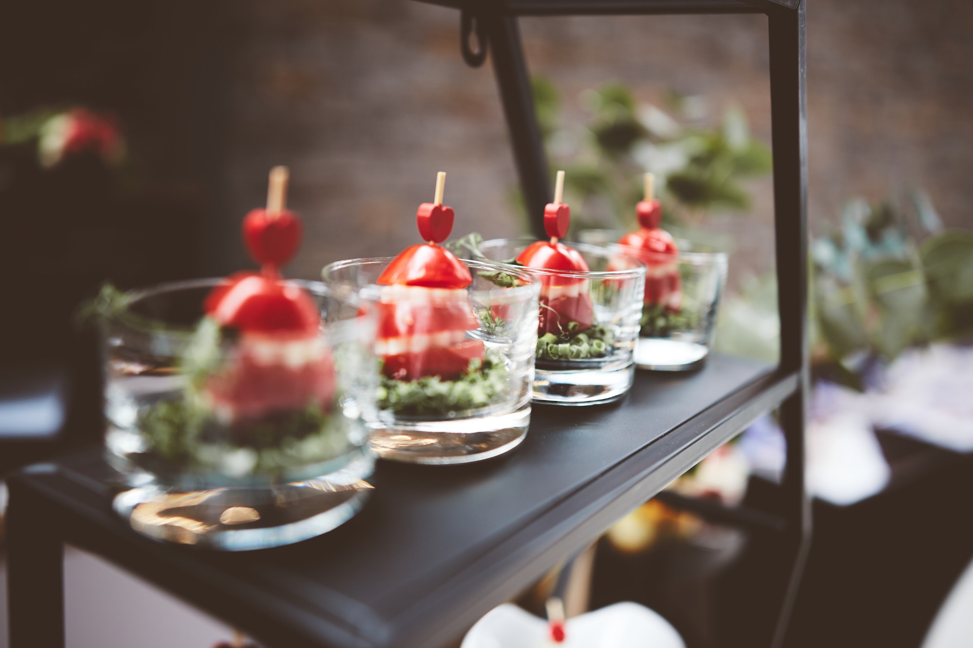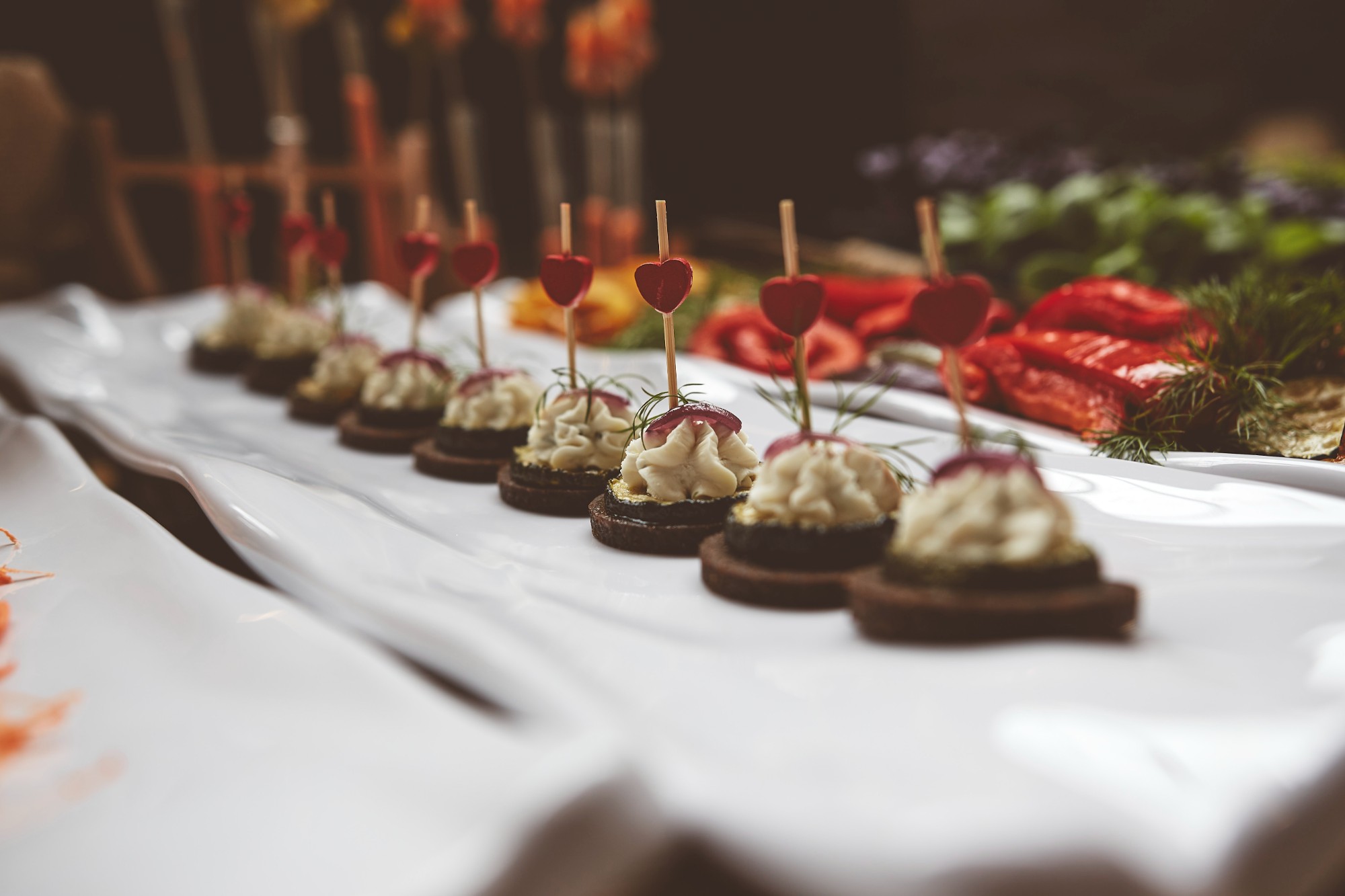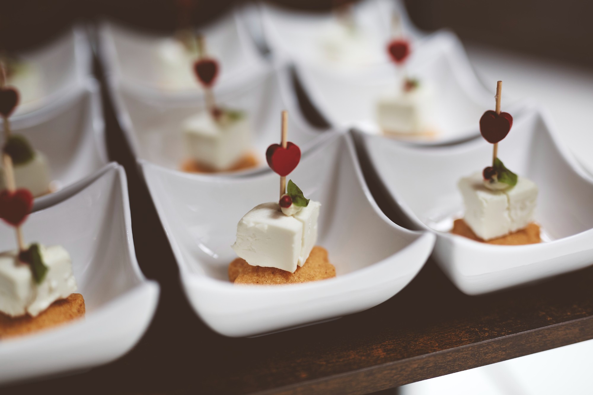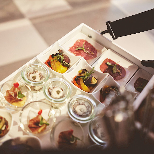 Elegante Canapés, Mini-Quiches, Jakobsmuscheln, Lachsröllchen oder raffinierte Dessert-Häppchen kommen bei Hochzeitsgästen besonders gut an.