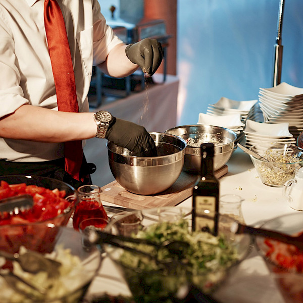 Beim Live-Cooking werden die Speisen direkt vor Ort frisch zubereitet. Unsere Köche kommen mit dem benötigten Equipment zu Ihrer Location und bereiten die Gerichte mit hochwertigen Zutaten live zu.