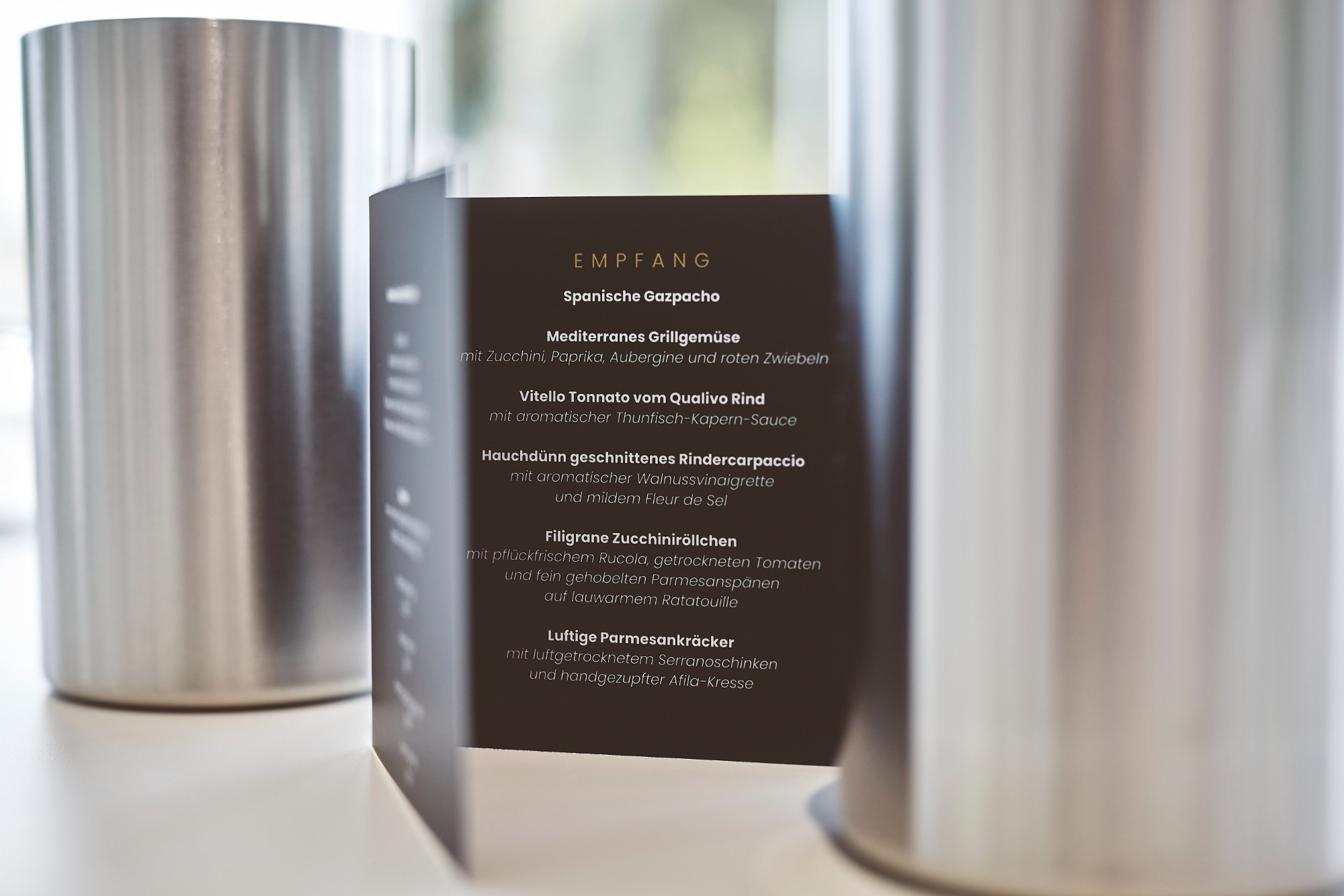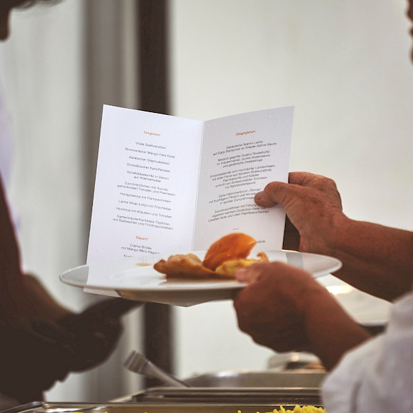 KontaktEin Menü bietet eine abgestimmte Speisenfolge und sorgt für einen harmonischen Ablauf. À la carte dagegen lässt Ihren Gästen freie Wahl, individuell und flexibel zu entscheiden. Während das Menü Planungssicherheit und Struktur bietet, schafft à la carte ein persönlicheres Erlebnis mit größerer Auswahlfreiheit. Entscheiden Sie je nach Stil und Aufwand Ihrer Veranstaltung, welche Variante am besten passt.