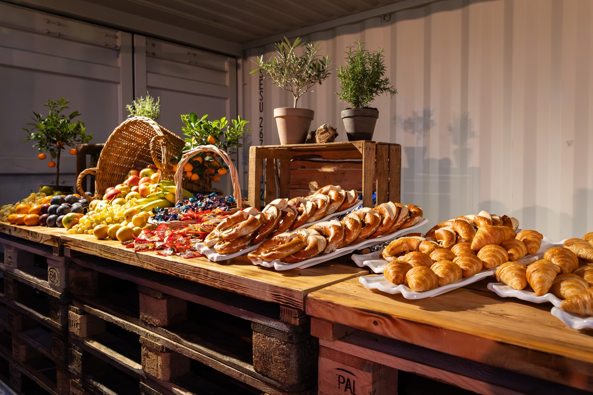 Wir planen die Lieferung und den Service zeitlich genau und abgestimmt auf Ihre Messetermine, damit alles frisch und pünktlich bereitsteht.