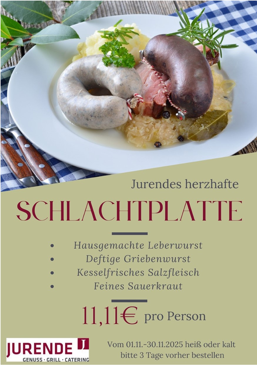 Informationen zur Verfügbarkeit des Angebots, zu den Zutaten und zu den Kosten der Schlachtplatte finden Sie unter folgendem Link: