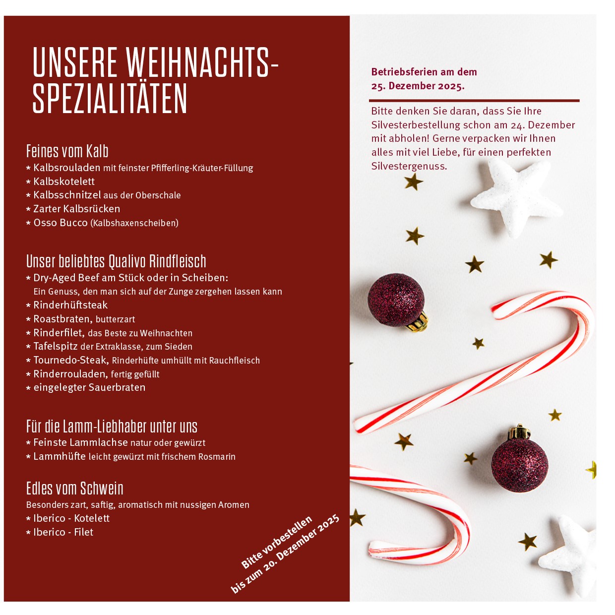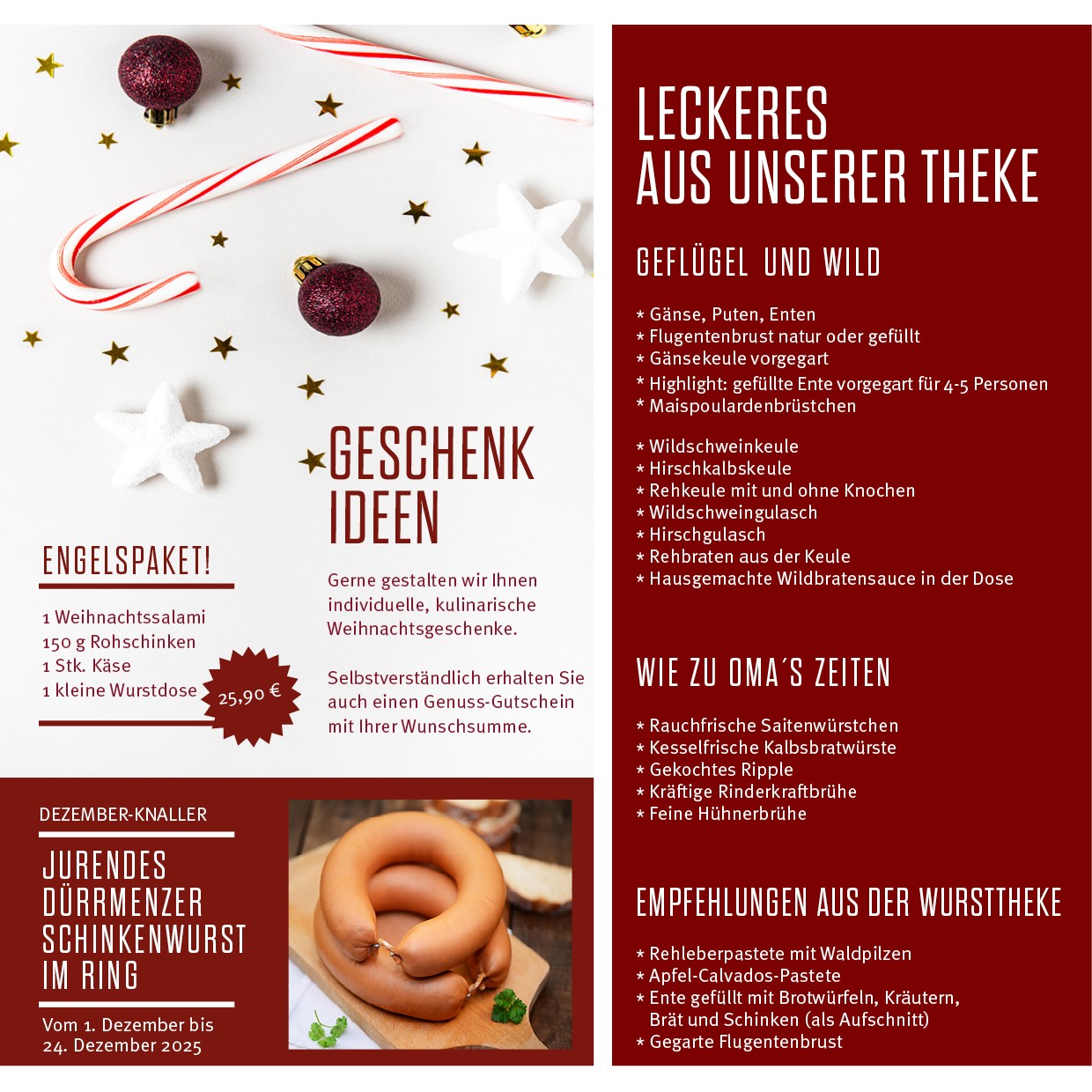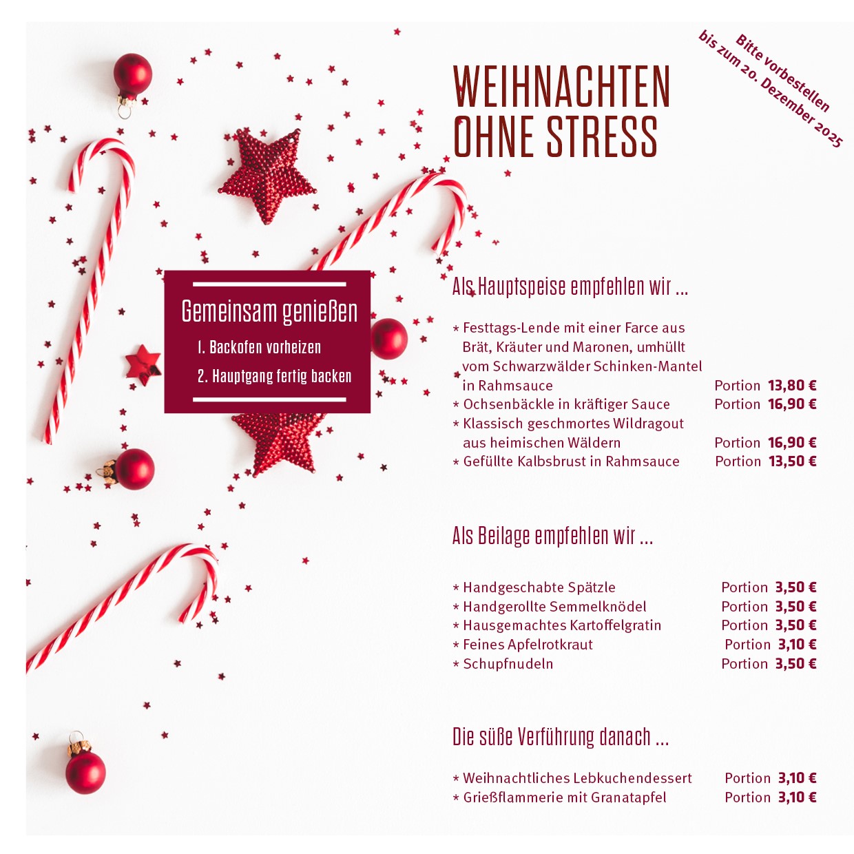 Entdecken Sie raffinierte Vorspeisen, herzhafte Hauptgerichte und verführerische Desserts, die jeden Festtag zu einem besonderen Erlebnis machen.
